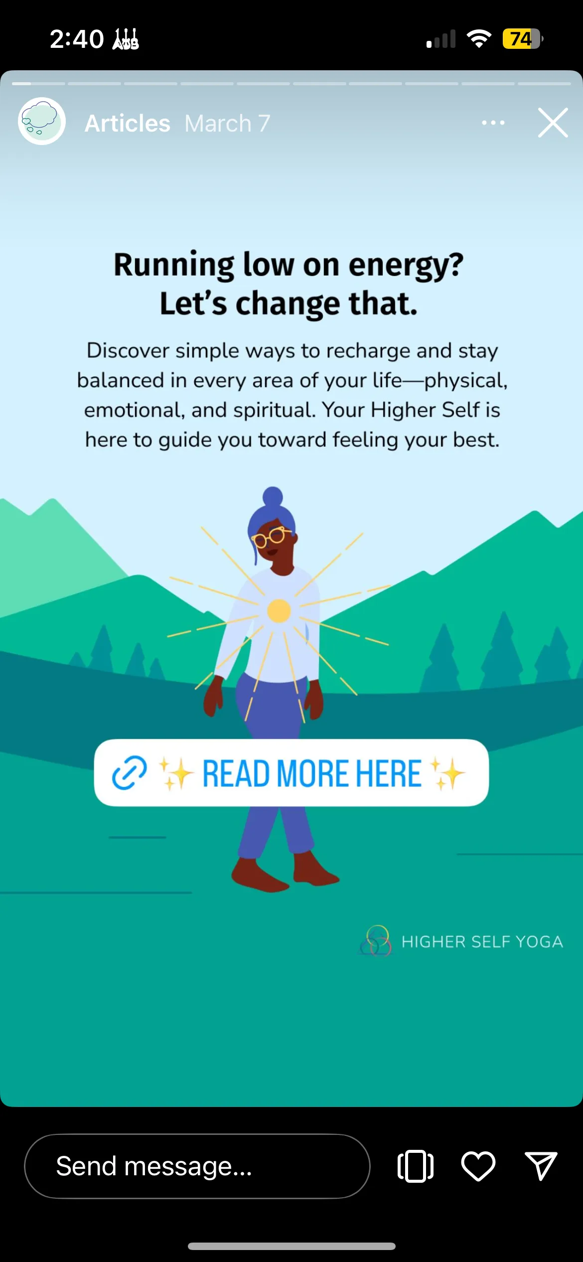 Higher Self Yoga is a spiritual development brand focused on providing classes, resources, and education on how individuals can connect with their "Higher Self". With the Senior Designer and Creative Director at Luminary Agency, I created a digital illustration for a HSY blog post in their branded style.